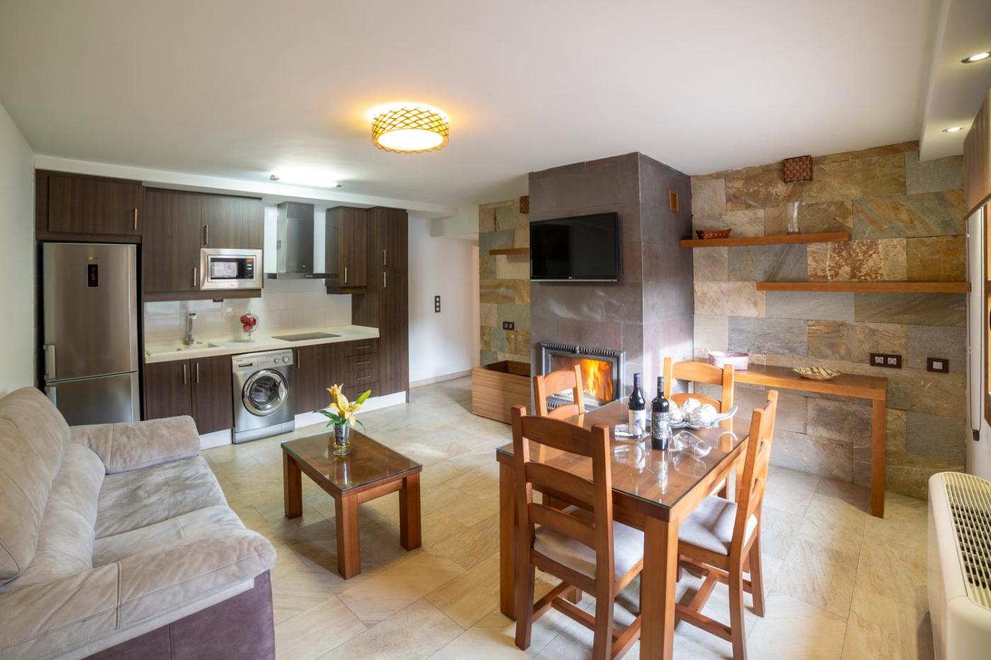 Each unit has a terrace, a fully equipped kitchen with a microwave, a fireplace, a seating area, a flat-screen TV, a washing machine, and a private bathroom with shower and a hair dryer. A balcony with an outdoor dining area and mountain views is offered in each unit. At the holiday home, units are fitted with bed linen and towels.