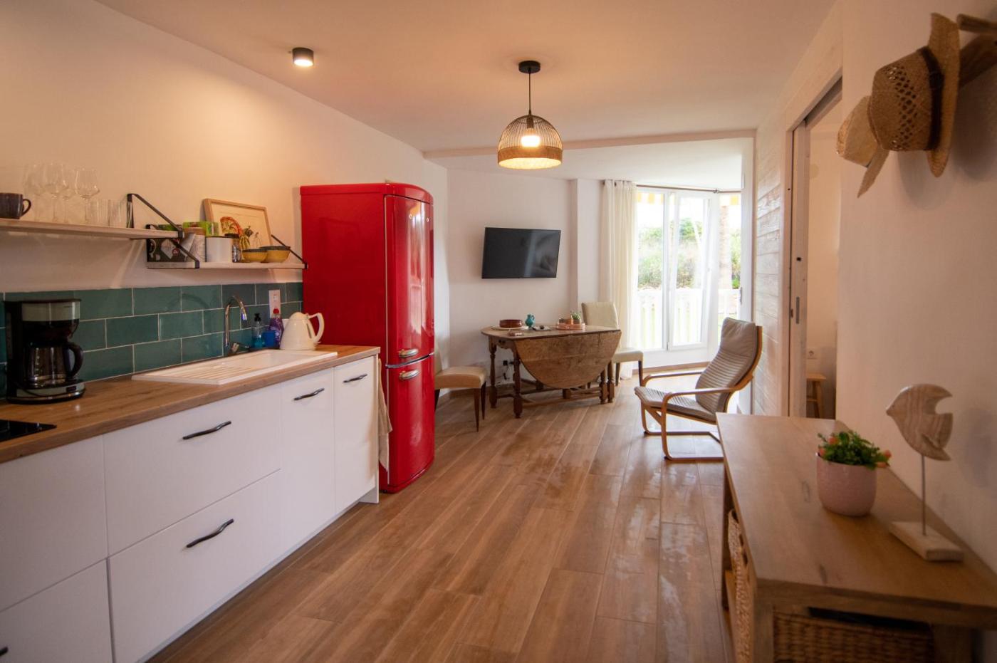 One-Bedroom Apartment. Featuring a private entrance, this air-conditioned apartment consists of 1 living room, 1 separate bedroom and 1 bathroom with a shower and a hairdryer. Guests can make meals in the kitchen that is equipped with a stovetop, a refrigerator, kitchenware and an oven. This apartment features a washing machine, flat-screen TV, sea views, as well as winechampagne for guests. The unit offers 2 beds.