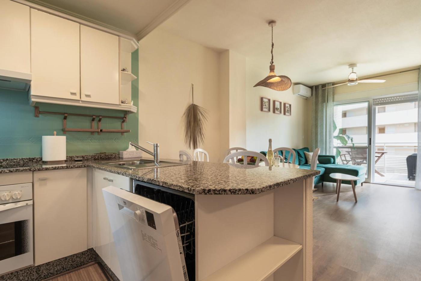 Two-Bedroom Apartment. The pool with a view is a top feature of this apartment. Boasting a private entrance, this air-conditioned apartment comes with 1 living room, 2 separate bedrooms and 1 bathroom with a shower and a hairdryer. Meals can be prepared in the kitchen, which features a stovetop, a refrigerator, a dishwasher and kitchenware. The spacious apartment features a washing machine, a tea and coffee maker, a dining area, a flat-screen TV with streaming services, as well as sea views. The unit has 4 beds.