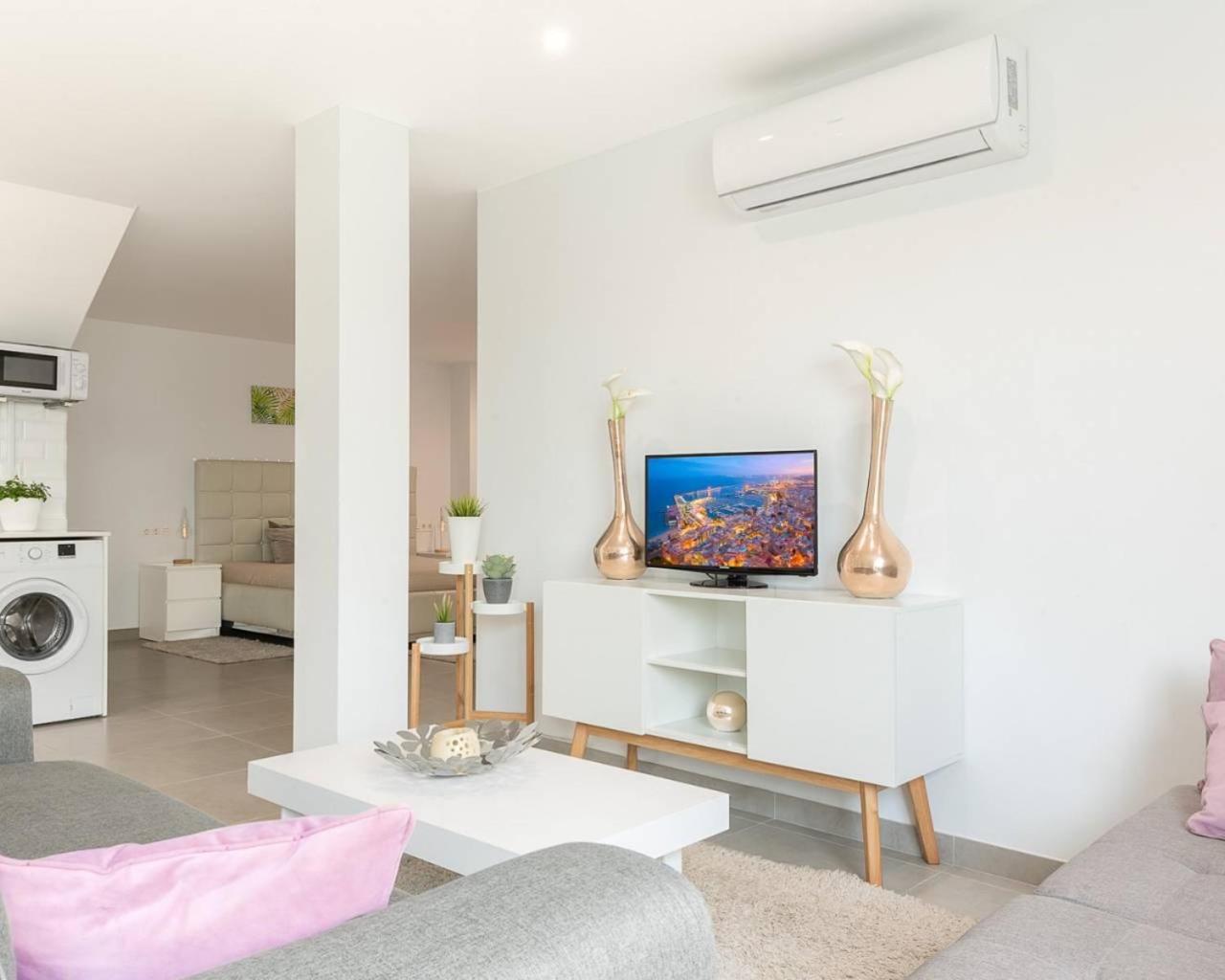 Studio Apartment. Boasting a private entrance, this spacious apartment also features 1 living room, 1 separate bedroom and 1 bathroom with a shower. In the well-equipped kitchen, guests will find a stovetop, a refrigerator, kitchenware and an oven. This air-conditioned apartment includes a dining area, a flat-screen TV with cable channels a washing machine and a terrace. The unit has 3 beds.