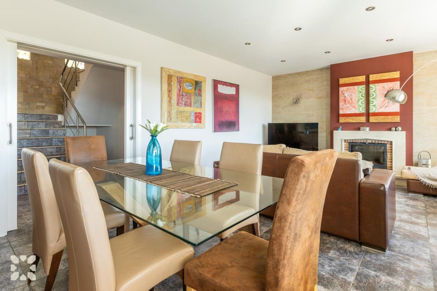 Villa. The private pool and fireplace are the special features of this villa. This spacious villa comprises 4 bedrooms, kitchen, a terrace and 3 bathrooms with a bath. The fully equipped kitchen features a refrigerator, a dishwasher, kitchenware and an oven. The air-conditioned villa provides a TV with satellite channels, a washing machine, a tea and coffee maker, a barbecue as well as sea views. The unit offers 4 beds.