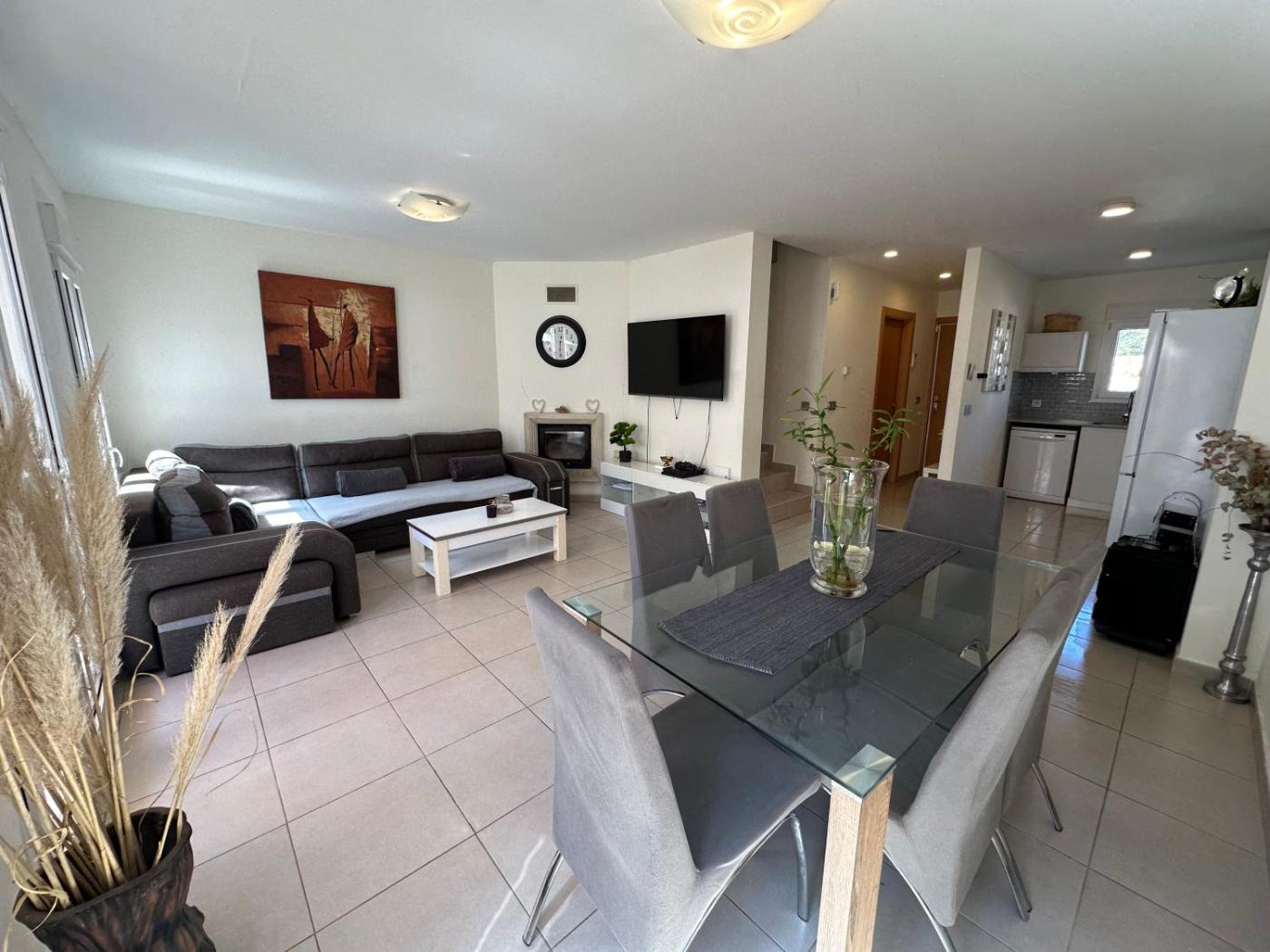 Three-Bedroom House. This holiday homes standout features are the pool with a view and fireplace. Featuring a private entrance, this air-conditioned holiday home comprises 1 living room, 3 separate bedrooms and 3 bathrooms with a bath and a shower. Guests will find a refrigerator, a dishwasher, kitchenware and an oven in the fully equipped kitchen. The holiday home also provides guests with a barbecue. The spacious holiday home provides a washing machine, a tea and coffee maker, a seating area, a flat-screen TV with streaming services, as well as garden views. The unit offers 4 beds.