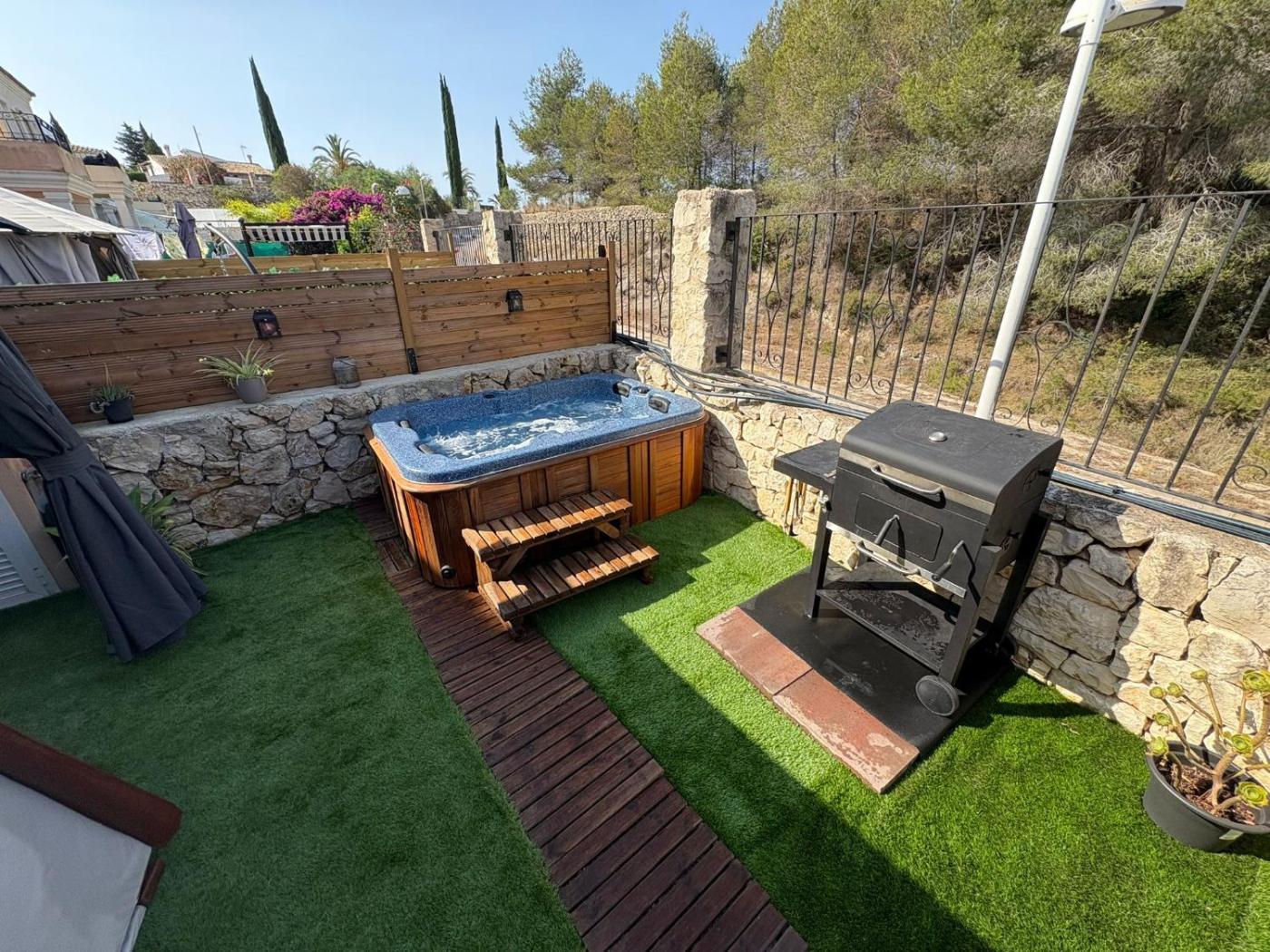 Boasting air-conditioned accommodation with a balcony, Cala-Azul y Jacuzzi is situated in Calpe. This holiday home has a private pool, a garden, barbecue facilities, free WiFi and free private parking. The holiday home has an outdoor fireplace and a hot tub.