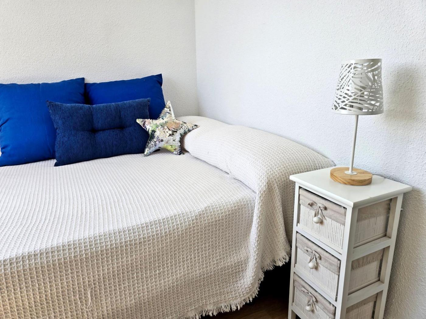 Two-Bedroom Apartment. The air-conditioned apartment has 2 bedrooms, 1 bathroom and a kitchen. The apartments kitchen is available for cooking and storing food. Boasting a balcony with sea views, this apartment also features a washing machine and a flat-screen TV. The unit has 3 beds.