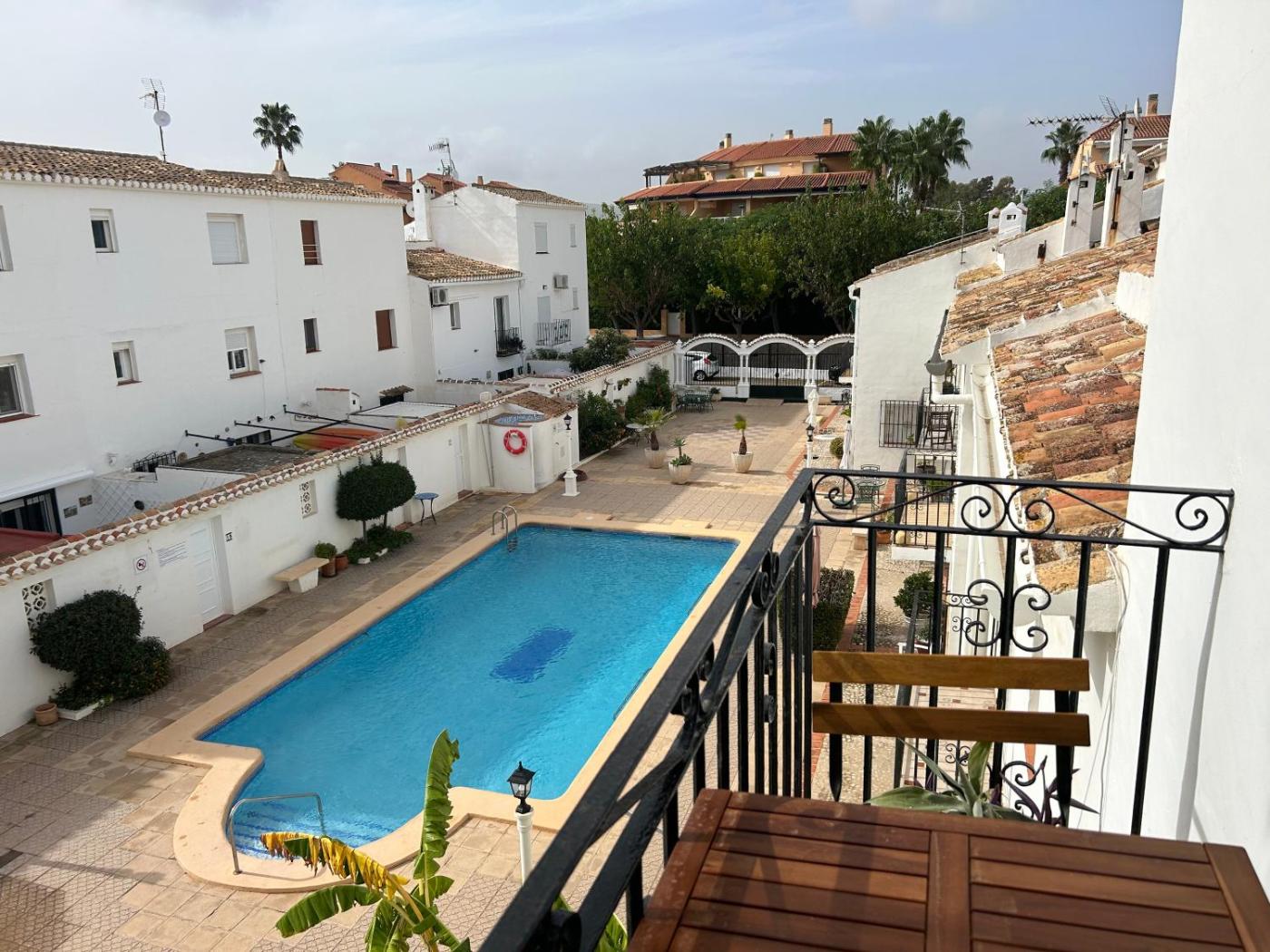 The spacious apartment is fitted with 2 bedrooms, 2 bathrooms, bed linen, towels, a flat-screen TV with streaming services, a dining area, a fully equipped kitchen, and a terrace with pool views.