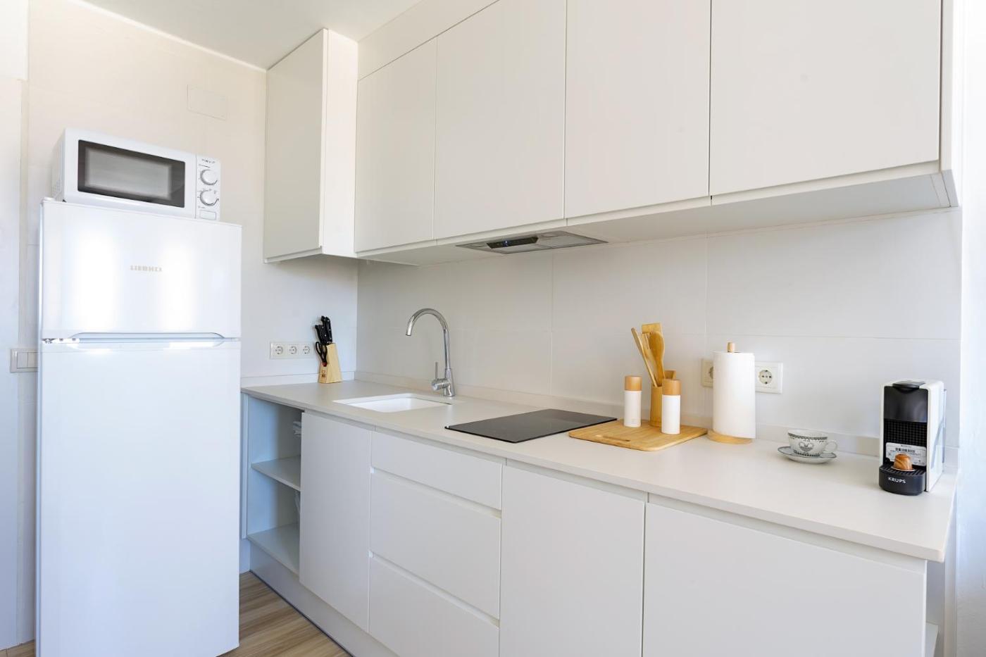 One-Bedroom Apartment. Featuring a private entrance, this air-conditioned apartment comprises a kitchen, 1 bedroom and 1 bathroom with a bath or a shower and a hairdryer. The well-equipped kitchen features a stovetop, a refrigerator, kitchenware and a microwave. The apartment provides a washing machine, a tea and coffee maker, a wardrobe, a flat-screen TV, as well as sea views. The unit offers 2 beds.