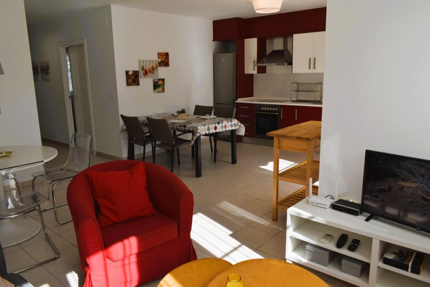 The spacious apartment comes with 2 bedrooms, 1 bathroom, bed linen, towels, a TV with satellite channels, a fully equipped kitchen, and a terrace with pool views.