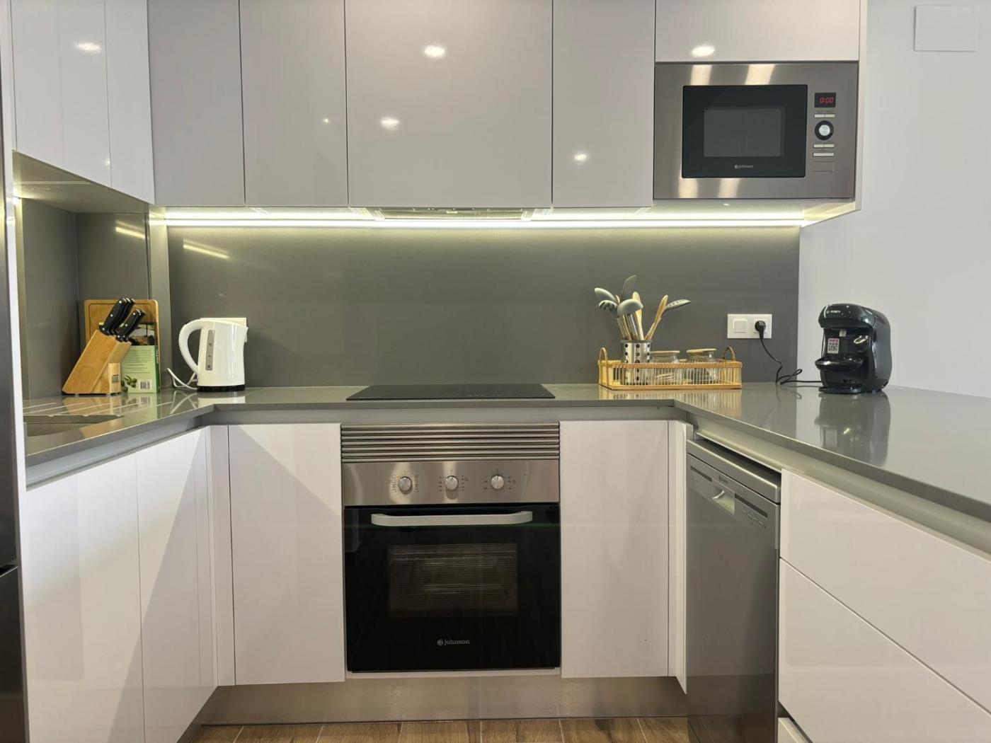 Two-Bedroom Apartment. This spacious apartment features 1 living room, 2 separate bedrooms and 2 bathrooms with a walk-in shower and free toiletries. In the well-fitted kitchen, guests will find a stovetop, a refrigerator, a dishwasher and kitchenware. The air-conditioned apartment features a flat-screen TV with streaming services, a washing machine, a private entrance, a tea and coffee maker as well as garden views. The unit has 4 beds.