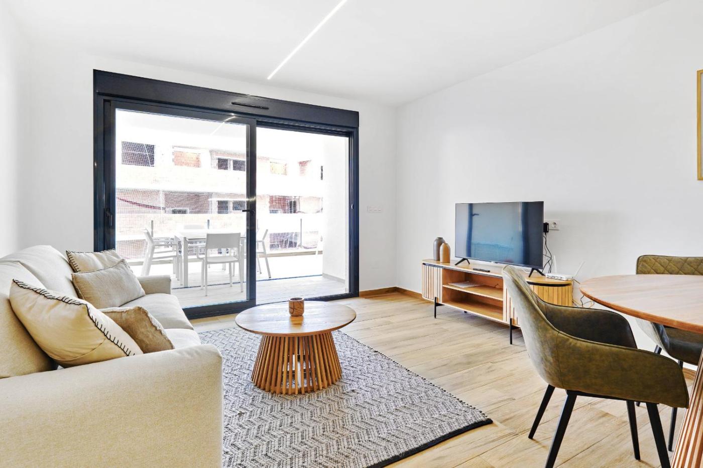 The spacious apartment comes with 2 bedrooms, 2 bathrooms, bed linen, towels, a TV with satellite channels, a fully equipped kitchen, and a terrace with pool views.