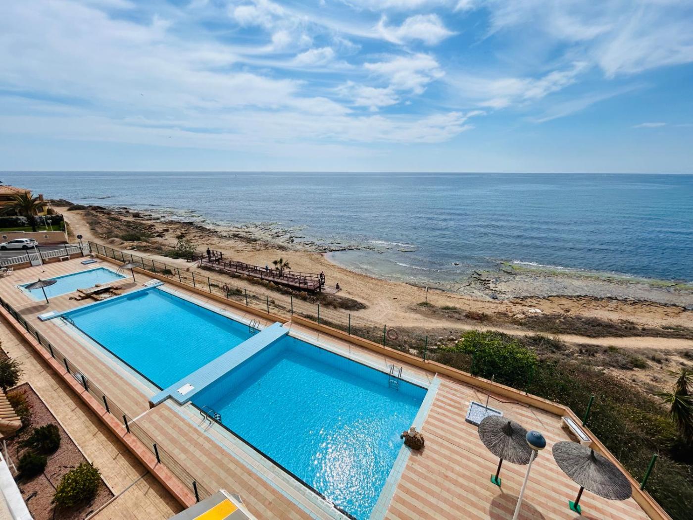 Featuring air-conditioned accommodation with a pool with a view, sea view and a terrace, Apartamento Vistas al Mar is located in Torrevieja. This beachfront property offers access to a balcony and free WiFi. The property is non-smoking and is situated less than 1 km from La Zorra Beach.