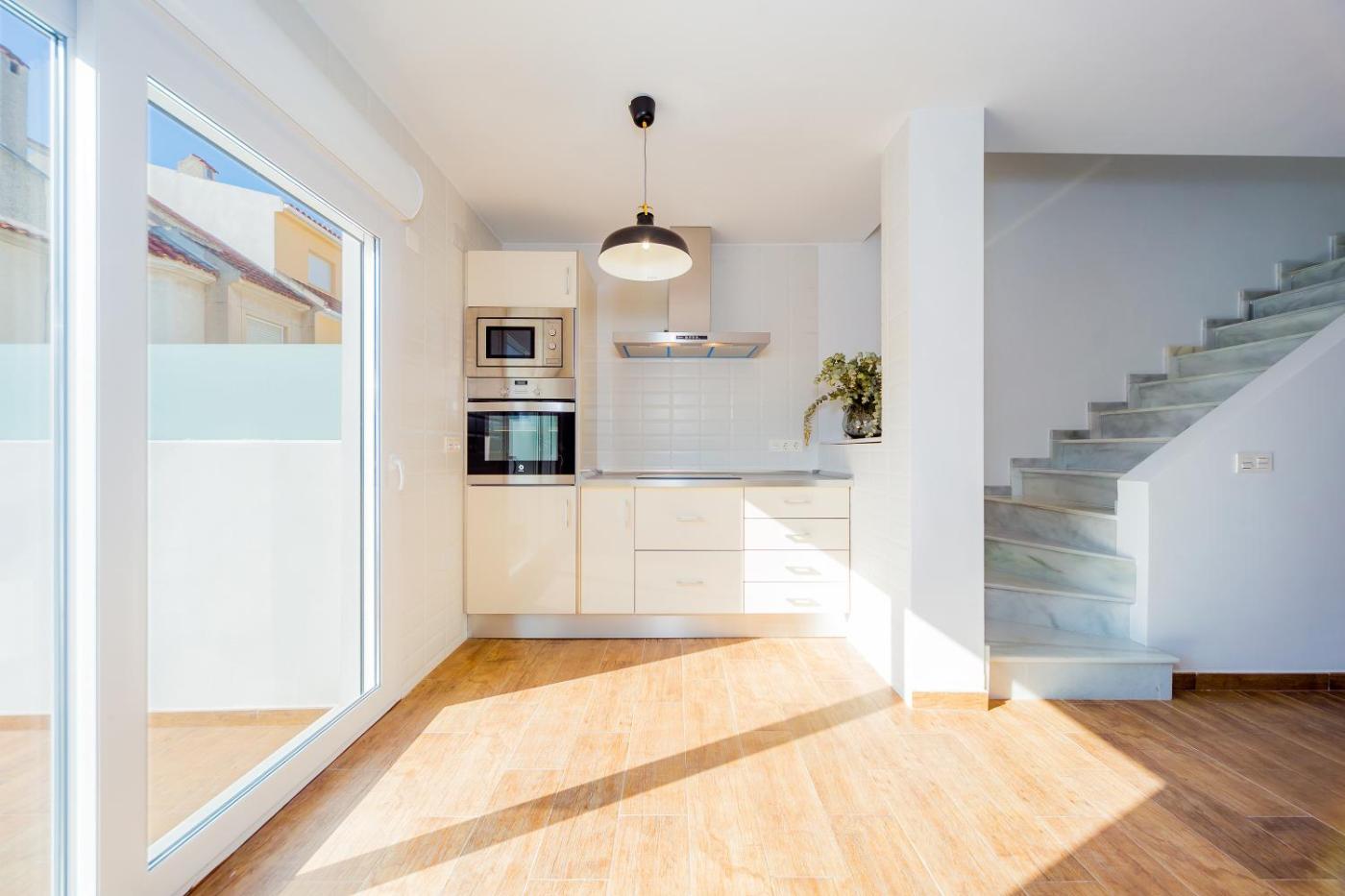 Three-Bedroom Townhouse. Featuring a private entrance, this air-conditioned holiday home comprises 1 living room, 3 separate bedrooms and 2 bathrooms with a walk-in shower and a hairdryer. The fully equipped kitchen features a stovetop, a refrigerator, kitchenware and an oven. Boasting a terrace with garden views, this holiday home also provides a washing machine and a flat-screen TV with cable channels. The unit offers 4 beds.