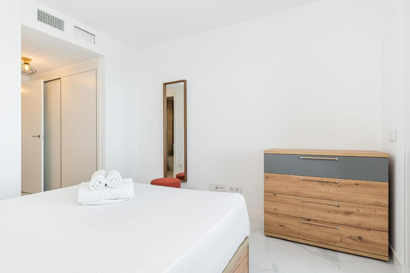 Two-Bedroom Apartment. This spacious apartment comes with 1 bedroom, a kitchen and 2 bathrooms with a shower. Meals can be prepared in the kitchen, which features a refrigerator, kitchenware and a microwave. The air-conditioned apartment features a flat-screen TV, a washing machine, a coffee machine, a sofa as well as sea views. The unit has 1 bed.