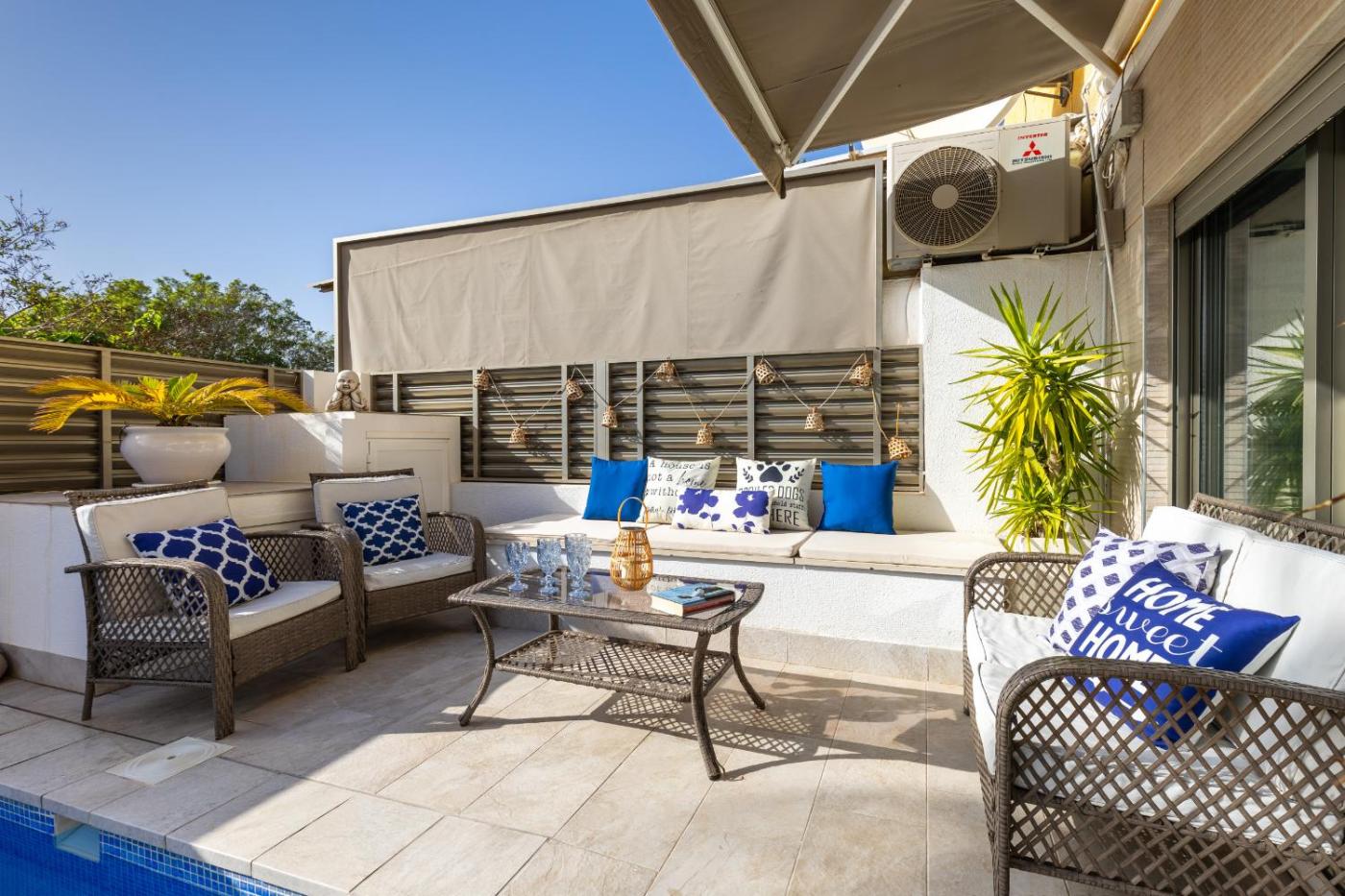 Villa with Private Pool. Guests will have a special experience as this villa features a private pool. Featuring a private entrance, this spacious villa also is comprised of 6 bedrooms, a seating area and 4 bathrooms with a bath and a shower. In the well-fitted kitchen, guests will find a refrigerator, a dishwasher, kitchenware and an oven. The villa offers air conditioning, a washing machine, a tea and coffee maker, tumble dryer, as well as a TV with satellite channels. The unit offers 8 beds.