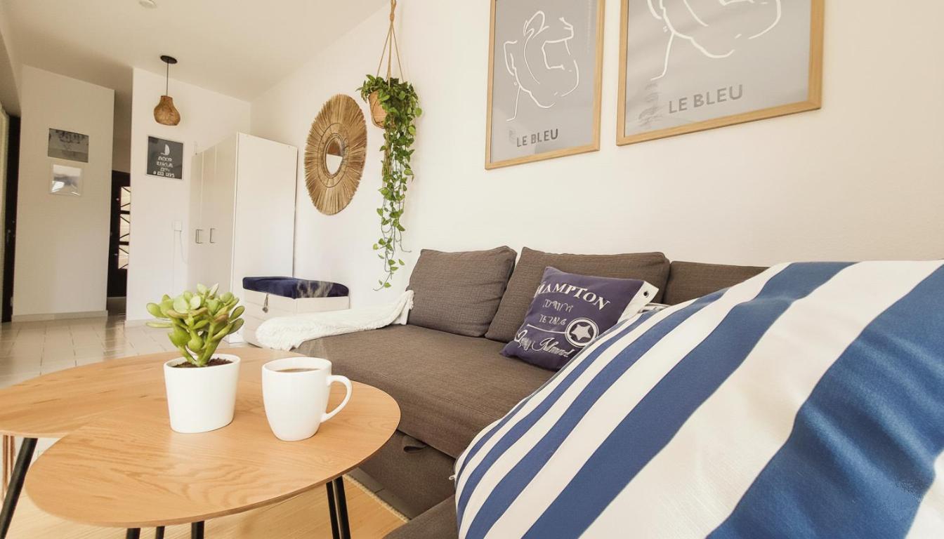 The apartment with a balcony and garden views features 1 bedroom, a living room, a flat-screen TV, an equipped kitchen with a microwave and a fridge, and 1 bathroom with a bidet. Towels and bed linen are featured in the apartment. The property has an outdoor dining area.